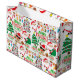 Que belo "Feliz Natal", grande Gift Bag, que vai fazer seus presentes se destacarem! Apresentando Papai Noel, uma rena legal com sunnies, um gato malicioso enrolado com as luzes das árvores de Natal, meias de Natal esperando serem preenchidas, todas capturando o espírito da estação, fazer perfeito para todas as suas comemorações de Natal.