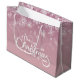 Sacola Para Presentes Grande Feliz Natal Flocos de Neve Férias Rosa