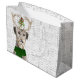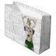 Amantes de cães adorarão receber ou dar este saco de presentes de férias fofo, com um giro Wolfhound irlandês em galhadas e cachecol verde de inverno.