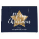 Sacola Para Presentes Grande Feliz Natal Marinho Dourado Azul