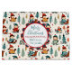 Um saco de presentes de Natal personalizado com crianças engraçadas e engraçadas, trenós e pinheiros em vermelho de tijolo e turquesa. Um presente para você e um lugar para você adicionar seu nome de família.