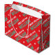 Prepare-se para o Natal com um saco de presentes de nome personalizado! Este design ousado apresenta uma tipografia inspirada em camisa esportiva, com uma fonte de blocos retrorreflectores, um roteiro de tendências e um motivo de estrela. Personalize o modelo com o nome do destinatário e um cartões de natal, ou adapte-o para qualquer ocasião especial. Este saco de presentes festivos é adequado para todas as idades, desde crianças e adolescentes até família e amigos! Disponível com um acabamento mate ou brilhante. Cores impressas: vermelho claro, verde e branco.
