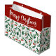 Esta linda folha de aquarela e bagas sagradas decoram esta sacola festiva de Natal Feliz. Nada toca nos feriados como belos padrões verdes e vermelhos. Um lindo padrão de folha e baga em um grande saco de festas de férias.