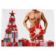 Feliz Natal SlipperyJoe Red White caixa prateada branca arcos musculares masculinos masculinos ornamentos de férias artístico árvore festiva de fundo estômago com seis pacotes de presentes orgulho gay LGBTQIA arrojado feriado único palhaço vários presentes embrulhados