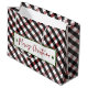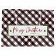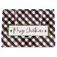 Use esta bolsa de presente de cheque de búfalos de fazenda para o seu presente de Natal. O padrão preto e vermelho da xadrez é acentuado com uma saudação de "Feliz Natal" em texto escrito à mão.