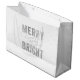 Sacola Para Presentes Grande Feliz prata e floco de neve branco e feriado brilh