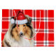 Sacola Para Presentes Grande Feriado do Cachorro Collie da Xadrez Vermelha