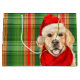 Os amantes de cães adorarão receber ou dar este saco de presentes de férias bonitinho, com um na moda Ouro Retriever num fundo de xadrez festiva de Natal.
