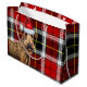 Sacola Para Presentes Grande Feriado do Cão de Airedale Terrier, Xadrez Vermelh