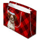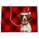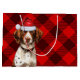 Sacola Para Presentes Grande Feriado do Lover do Cão Brittany, Xadrez Vermelha