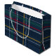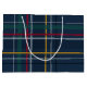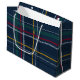 Uma xadrez de Natal simples e clássica, com fundo azul marinho e cheques verdes, vermelhos, amarelos e brancos, faz uma bolsa de presente de feriado perfeita. Projetada para coordenar com a feliz de Design Lea Delaveris e a coleção de xadrezes brilhantes, esta bolsa faz um excelente adicional ao invólucro de presentes, etiquetas e adesivos também disponíveis. Perfeito para uma coleção coordenada de presentes sob sua árvore.