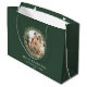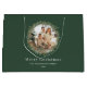 O Bag Gift do Natal com um visual elegante com a coroa do natal com um modelo de foto da família em saga verde pode adicionar fotos da família, pode mudar a cor do fundo, o tipo de fonte e a cor como quiser.