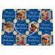 Torne seus presentes de férias especiais extra com um saco de presentes de fotos personalizado! Este modelo editável é personalizado com quatro de suas fotos favoritas, e o nome do receptor, seu nome de família ou o ano de feriado. Ele apresenta quadros de imagem hexagonais, colocados sobre um fundo festivo de flocos de neve e estrelas, junto com a frase "Feriados Felizes". Um design de na moda emparelhando a tipografia tradicional com um design geométrico clássico. Perfeito para fotos de crianças, família, amigos e animais de estimação! Um saco de presentes padrão completo, disponível com um acabamento mate ou brilhante. Cores impressas: azul, branco e uma cor dourada.