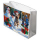 Sacola Para Presentes Grande Fio Fox Terrier nevando com chapéu de Natal
