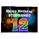 Este design de sacola de presente vibrante e divertido apresenta um padrão colorido inspirado em fogos de artifício celebratórios, juntamente com o número "12", tendo um padrão de gradiente inspirado no arco-íris multicolor, num fundo de cor preta. Ele também apresenta um nome personalizado e uma mensagem de evento, como uma saudação de aniversário. Uma bolsa de presente colorida e alegre como esta pode ser usada quando se dá um presente ou presente a alguém que comemora seu décimo segundo aniversário. [~Z0000328]