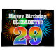 Este design de sacola de presente vibrante e divertida apresenta um padrão colorido inspirado em fogos de artifício celebratórios, juntamente com o número "29", tendo um padrão de gradiente inspirado no arco-íris multicolor, sobre um fundo de cor preta. Ele também apresenta um nome personalizável e uma mensagem de evento, como uma saudação de aniversário. Uma bolsa de presente colorida e alegre como esta pode ser usada quando se dá um presente ou presente a alguém que comemora seu vigésimo nono aniversário. [~Z0000328]