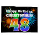 Este design de sacola de presente vibrante e divertida apresenta um padrão colorido inspirado em fogos de artifício celebratórios, juntamente com o número "48" tendo um padrão multicolorido de arco-íris como gradiente, em um fundo preto colorido. Ele também apresenta um nome personalizado e uma mensagem de evento, como uma saudação de aniversário. Um saco de presentes como este pode ser usado para embrulhar um presente ou presente que está sendo dado em comemoração do quarenta oitavo aniversário de alguém. [~Z0000328]