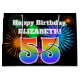 Este design de sacola de presente vibrante e divertida apresenta um padrão colorido inspirado em fogos de artifício celebratórios, juntamente com o número "55" com um padrão multicolorido do arco-íris como gradiente, em um fundo preto colorido. Ele também apresenta um nome personalizado e uma mensagem de evento, como uma saudação de aniversário. Uma bolsa de presente colorida e alegre como esta pode ser usada quando se dá um presente ou presente a alguém que comemora seu cinquenta quinto aniversário. [~Z0000328]