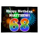 Este design de sacola de presente vibrante e divertida apresenta um padrão colorido inspirado em fogos de artifício celebratórios, junto com o número "68" tendo um padrão multicolorido de gradiente, como um fundo preto colorido. Ele também apresenta um nome personalizado e uma mensagem de evento, como uma saudação de aniversário. Uma bolsa de presente divertida como esta poderia ser usada ao embrulhar um presente ou presente sendo dado em comemoração do 68º aniversário de alguém. [~Z0000328]