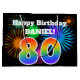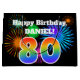 Este design de sacola de presente vibrante e divertida apresenta um padrão colorido inspirado em fogos de artifício celebratórios, juntamente com o número "80" tendo um padrão de gradiente inspirado no arco-íris multicolor, sobre um fundo de cor preta. Ele também apresenta um nome personalizado e uma mensagem de evento, como uma saudação de aniversário. Uma bolsa de presente divertida como esta poderia ser usada ao embrulhar um presente ou presente sendo dado em comemoração do oitavo aniversário de alguém. [~Z0000328]