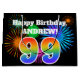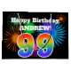 Este design de sacola de presente vibrante e divertida apresenta um padrão colorido inspirado em fogos de artifício celebratórios, juntamente com o número "99", que apresenta um padrão de gradação inspirado no arco-íris multicolor, num fundo preto colorido. Ele também apresenta um nome personalizado e uma mensagem de evento, como uma saudação de aniversário. Uma bolsa de presente divertida como esta poderia ser usada ao embrulhar um presente ou presente que está sendo dado em comemoração do 99º aniversário de alguém. [~Z0000328]