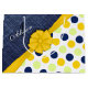 Jeans elegantes e pontos em padrões azuis e amarelos com uma fita adorável em uma cor amarela ensolarada e um monograma. Personalize alterando o nome ou clique em personalizar para adicionar seu próprio toque.