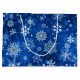 Sacola Para Presentes Grande Flocos de neve de Natal Azul e Prata Grande Saco