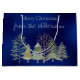 Este simples e elegante saco de presentes de Natal apresenta um aconchegante design de aquarela. Uma imagem de uma floresta de inverno é colocada sobre o fundo, com várias árvores espalhadas por neve. Um nome de família de amostra e uma saudação de Natal são impressos no topo. Você pode personalizar o saco de presentes para incluir seu próprio nome personalizado ou texto. O fundo na frente apresenta um padrão texturizado azul escuro, para se assemelhar a uma noite de inverno.