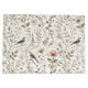 Um design de floresta encantado etéreo com cores pálidas e verdes, beges e castanhos com pequenas criaturas florestais de caracóis, pássaros e borboletas.