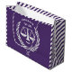 Saco de presente personalizado comemorativo para formatura em direito roxo criativo. Para personalizar, edite o texto para adicionar o nome do graduado e o ano.