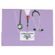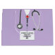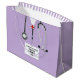Bolsa de presente de doutorado em faculdade de medicina criativa com esfregões de hospital de lavanda e estetoscópio. Editar texto para adicionar o nome de médico, assistente médico ou enfermeiro e as credenciais médicas.