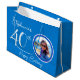 Sacola Para Presentes Grande Foto de aniversário de 40 anos azul elegante