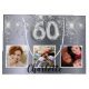 Uma bolsa de presente para um aniversário de 60 anos. Um fundo de prata com brilho. Personalize e adicione 3 fotos e um nome. O número 60 é escrito com uma fonte no estilo do balão. Perfeito como um saco de favores ou como um saco de presentes.