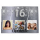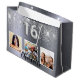 Uma bolsa de presente para uma menina e glamourosa Doce 16, 16 anos. Um fundo com aspecto sujo de prata com poeira brilhante. Personalize e adicione 3 fotos e um nome. O número 16 é escrito com uma fonte no estilo do balão. Perfeito como um saco de favores ou como um saco de presentes.