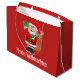 Frohe Weihnachten vermelho, grande saco de presentes com Papais noeis de desenho animado. Diga "Feliz Natal" em alemão com este grande saco de presentes. Perfeito para aquele presente especial.