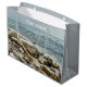 Foto de Zolotareva.Gaivota branca e surf do mar. o sol se inclina sobre a água; o banco de gaivotas na brisa.Azul claro é a cor do céu e, consequentemente, também é a cor do mar, lagos e rios. bela vista do mar da colina.Você pode adicionar nome ou texto personalizado.