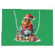 Sacola Para Presentes Grande Galinha de Natal em Óculos e Apresenta Verde
