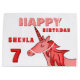 Bonita Garota Feliz de Aniversário do Unicórnio. O design tem um unicórnio rosa e vermelho. Personalize com seu nome e sua idade e faça uma bolsa especial de presente para o aniversário de uma garota.
