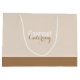 Gastronomia Catering Bolsa de Presentes Grande é uma bolsa de mercadorias comerciais elegante. Este formato é perfeito para outras empresas também. A tipografia e as cores neutras estão todas em harmonia. O nome da empresa no topo e os detalhes da empresa na parte inferior em um fundo de tira marrom de destaque na frente, enquanto na parte de trás é típico, exceto sem os detalhes da empresa.