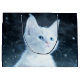 Saco de presentes com uma fotografia adorável de um gatinho branco de cabelo curto com olhos azuis brilhantes. Estreitando à distância.