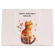 Saco de presentes com uma ilustração de aquarela adorável. Um gato de mesa laranja parecendo amigável e feliz com corações girando em volta.