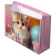 Façam aniversários especiais com este Gato Grito e Bolo de Aniversário de Bolo! Com uma design encantadora de um gato brincalhão rodeado de bolos e balões coloridos, esta bolsa de presentes adiciona um toque encantador a qualquer celebração. Feito com materiais duráveis e ecológicos, é perfeito para segurar presentes, guloseimas ou favoritos para festas. Ideal para amantes de gatos, crianças, e qualquer um que adora designs bonitinhos e caprichosos. Uma maneira perfeita de fazer seu presente se destacar e trazer sorrisos para qualquer festa de aniversário!