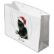 Sacola Para Presentes Grande Gato Preto de Aquarelas no Festivo Santa Hat Sag