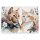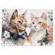 Par de gatos em flores em fundo branco. Pode ser usado para um evento de casamento ou aniversário.