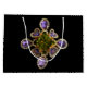 Bonitas joias de pedra preciosa - ametista roxo e esmeraldas verdes brocam com filigre de ouro e diamante - Velha brilha de Hollywood e glamour