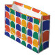 Design original de Nisha Prabhu, com meio círculo geométrico Large Gift Bag original. Faça seu presente inesquecível com nosso Saco Geométrico Grande do Meio Círculo Colorido! Este na moda e saco espaçoso apresenta um padrão de semicírculo arrojado e vibrante que adiciona uma reviravolta moderna a qualquer ocasião. Perfeito para aniversários, feriados ou celebrações especiais, este saco de presentes é tão atraente quanto funcional. O padrão geométrico vivo traz uma atmosfera divertida e festiva para as suas comemorações. Perfeito para qualquer ocasião - aniversários, graduações, feriados, ou só porque!