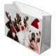 SACOLA PARA PRESENTES GRANDE GIFT BAG CHRISTMAS CÃES COM ANTLERS E SANTA HAT