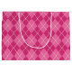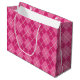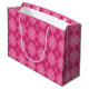 Um padrão brilhante de argila cor-de-rosa decora este saco de presentes festivos. Esta bolsa é excelente para uma festa de Natal, mulheres, meninas, adolescentes, um aniversário, feriados, Natal, etc... A design é de arte original.