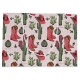 Esta bolsa de presente de Natal de uma menina cinzenta festiva apresenta um padrão desenhado à mão de ilustrações ocidentais de botas de cowgirl, chaptus, mitenes e bagas ocas, tudo sobre um cheio de fundo de estrelas minúsculas. Fundo rosa macio legante.