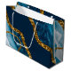 Sacola Para Presentes Grande Glitter de Geodo de Agato Azul e Dourado